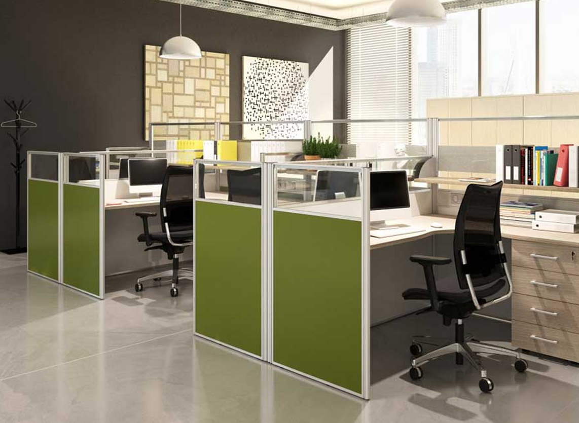 Модуль перегородки представляет собой прямоугольный каркас из окрашенных алюминиевых профилей, установленный на регулируемых опорах.